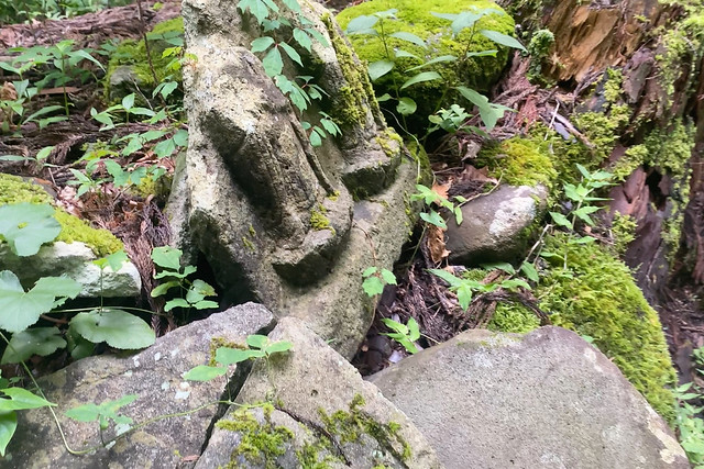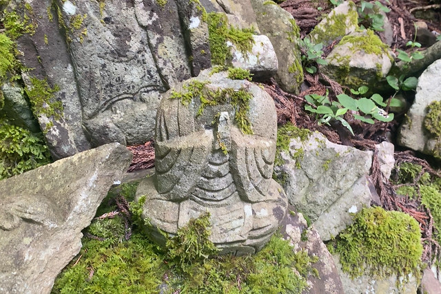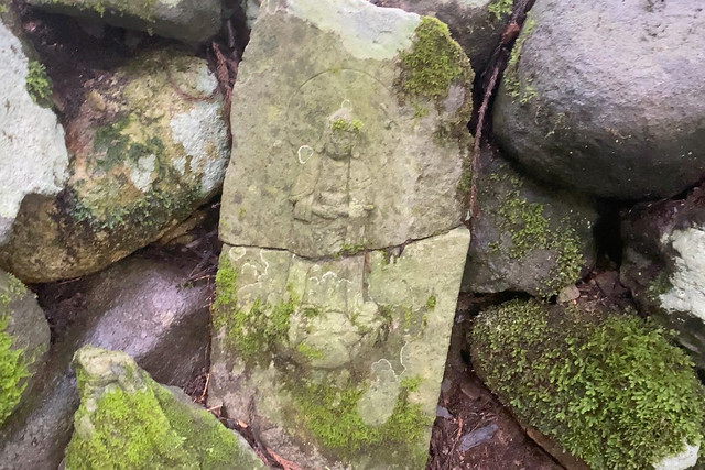 上半身が破壊された石仏。