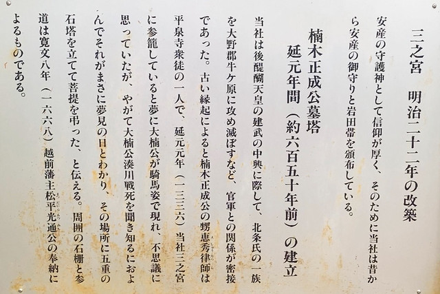 三の宮の手前左手に楠木正成の供養塔があります。