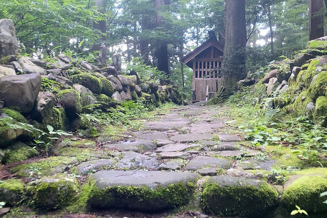 苔むす石畳や参道、社殿の跡などが今日まで良好に残されています。