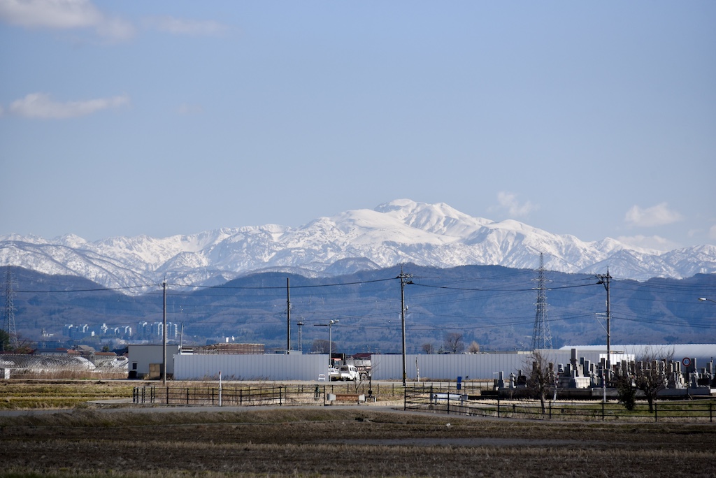 白山の尊容は良いとして、電線はあるわ、手前は共同墓地だわ、、、、。