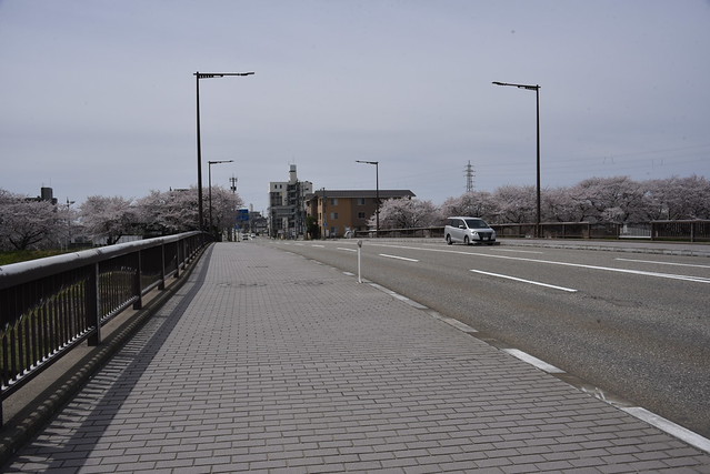 右岸左岸とも新幹線の陸橋より下流は犀川の土手は歩行者か自転車のみが通行できるようになっています。